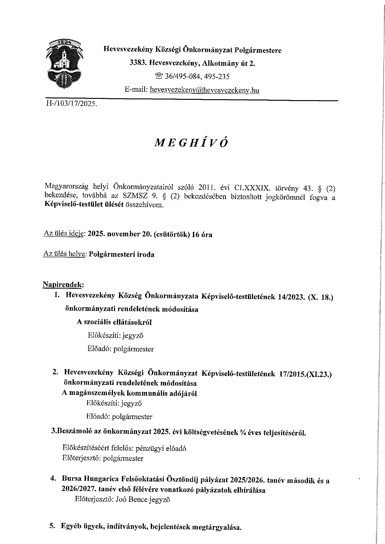 Meghívó 2025.11.20. Képviselő-testületi ülés