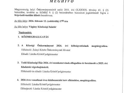 Meghívó 2026.02.12. Képviselő-testületi ülés